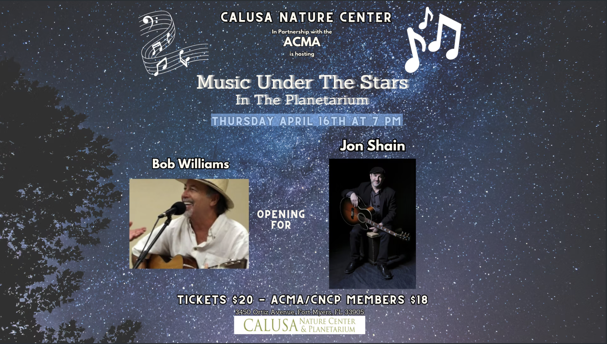 The ACMA always is happy to have Jon Shain back, this time in a new location…..The Planetarium at Calusa Nature Center.
