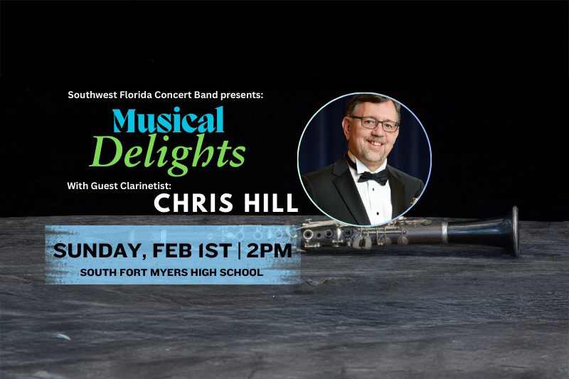 Musical Delights promises an evening of variety, energy, and artistry, featuring an eclectic mix of beloved classics, spirited marches, colorful contemporary works, and lighthearted surprises. Joining us is clarinetist Chris Hill, who is featured throughout the program.