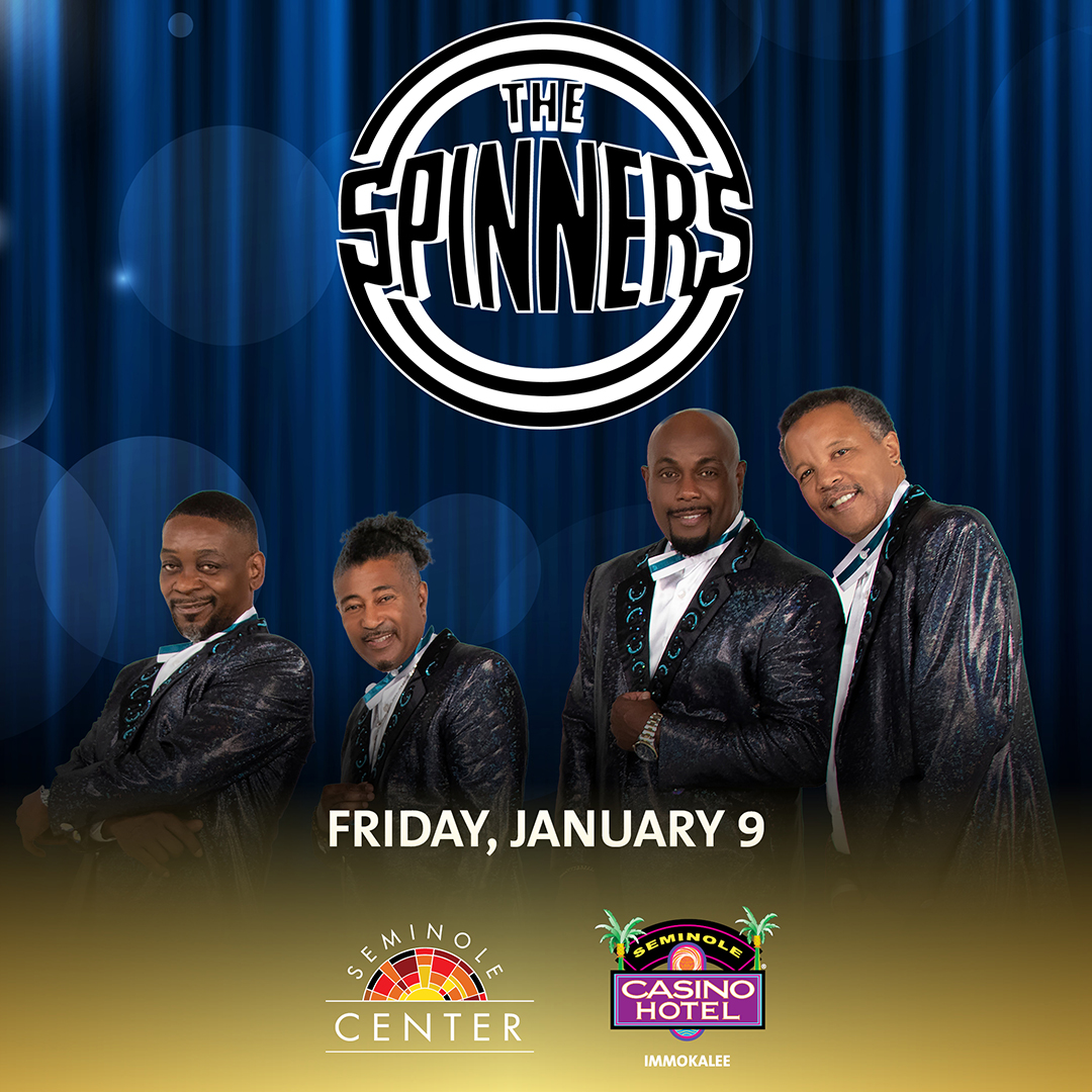 IMMOKALEE, Fla. (Aug. 19, 2025) – Seminole Casino Hotel Immokalee welcomes R&B legends The Spinners live in concert Friday, Jan. 9 with doors opening at 7 p.m. and the show beginning at 8 p.m. Tickets will be available Friday, Aug. 22 from Ticketmaster or at www.moreinparadise.com. Tickets starting at $59. Attendees must be 21. Parking is free.