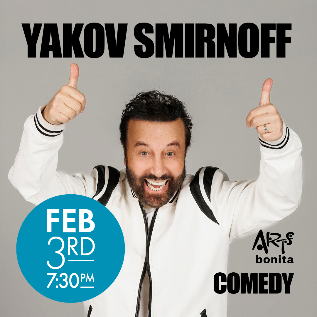 Smirnoff’s performances are defined by clean, joyful comedy rooted in humanity and insight. Whether exploring cultural differences, relationships, or the promise of the American dream, he delivers an evening of laughter that resonates across generations. His debut at Arts Bonita showcases an artist whose craft is built on heart as much as humor—uplifting, timeless, and unmistakably Yakov.