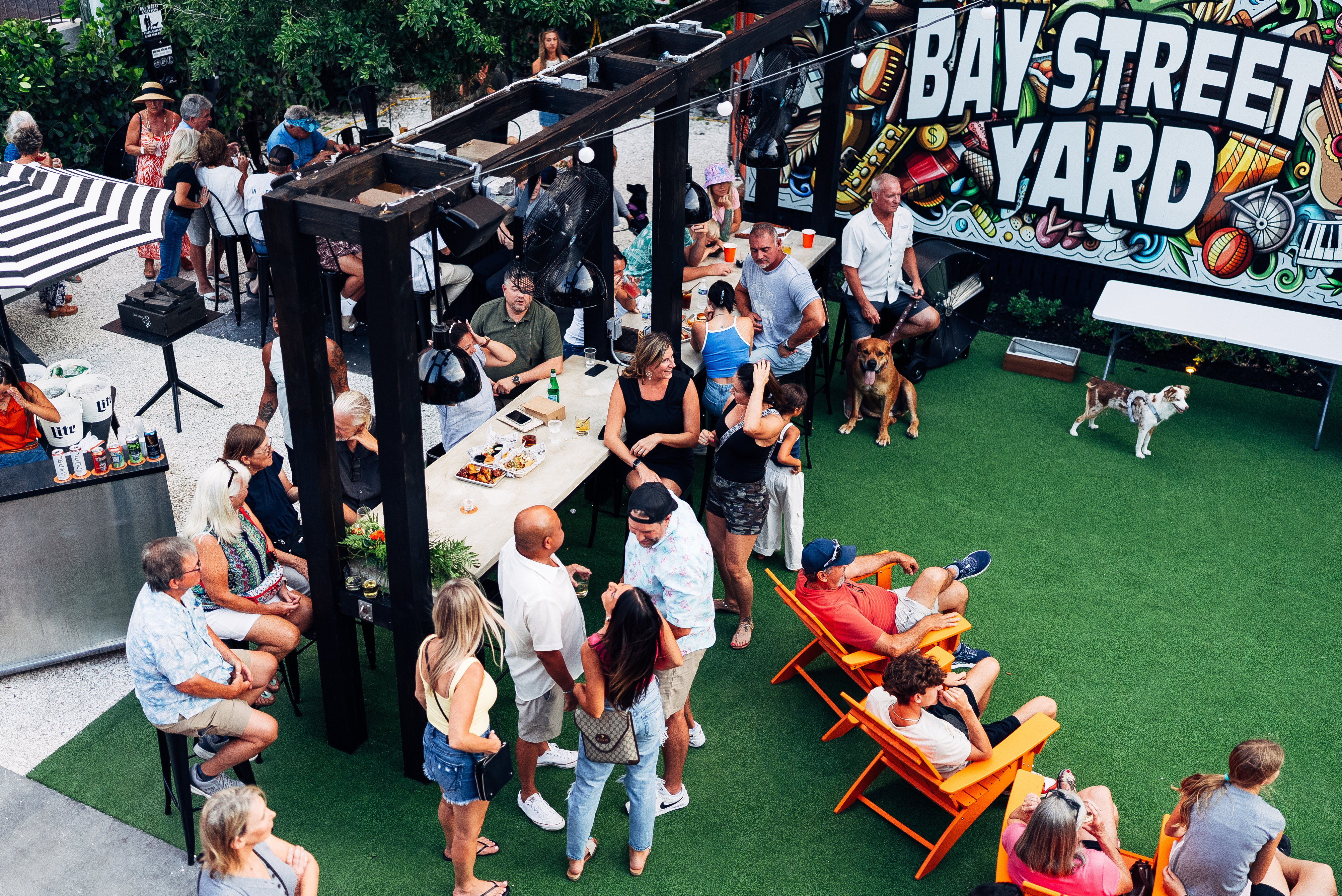 Bay Street Yard is a casual, yet upscale outdoor entertainment and food truck venue that will feature full-service bars with exceptional cocktails and local beers, food trucks serving up tailored menu options, seating for over 300 people and a second level with VIP seating and exclusive experiences. With an emphasis on entertainment, the state-of-the-art venue will offer a covered stage for live performances, an impressive 8-foot by 13-foot LED TV screen for viewing sporting events and a variety of outdoor games. The newest destination to socialize, entertain and be entertained in Southwest Florida.