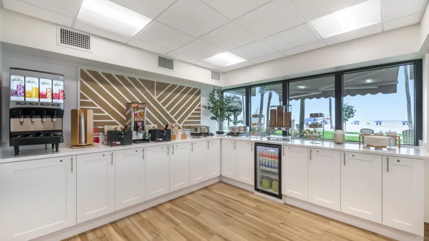 Choose from spacious rooms designed with your comfort in mind. If you’re looking for a little extra space to stretch out and relax, our suites offer a separate living room for entertaining and keep your sleeping area private. All our rooms have a microwave and refrigerator for your snacking needs or choose a room with a fully equipped kitchen. Private balconies overlooking the beach give you an amazing view, and comfortable beds ensure you’ll wake up completely refreshed. Our complimentary breakfast offers balanced and delicious options for everyone. Other free perks include WIFI, a business center offering a printer for your use, and parking for one car per room. Plus, no resort fee!