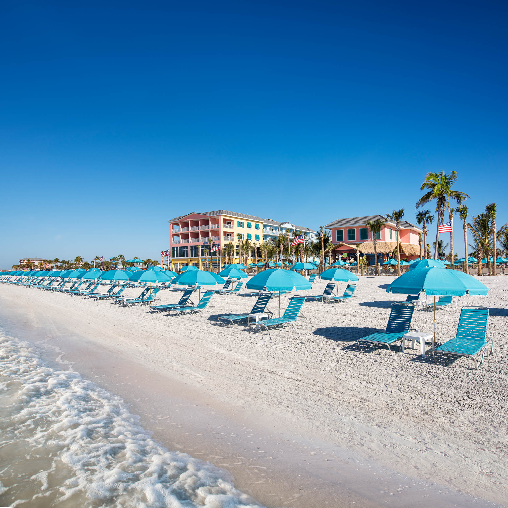 Margaritaville Beach Resort's aquatic oasis is located right on the pristine shores of Fort Myers Beach and is exclusively accessible to our guests and day pass holders. Surrounded by swaying palm trees, you'll feel your worries float away in our heated, lagoon-style pool. Our expansive sundeck offers ample seating areas for soaking up the warm Florida sun while savoring the breathtaking Gulf of Mexico views.